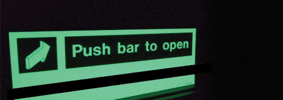 During and emergency evacuation where evacuees must be able to identify exit and fire exit doors and the method to operate them. This not only reinforces the means of escape route, but encourages efficient egress from an area, assuring life safety of evacuees. All JALITE photoluminescent door escape mechanism and panic hardware safety signs, allow evacuees to do this in all lighting conditions. This is essential in blackout situations or smoke-filled conditions, where evacuees may be panicked, and need clear and concise information on how to escape. Our safety signs feature the green safety colour and square shape, for escape equipment as specified in BS ISO 3864-1. JALITE photoluminescent door escape mechanism safety signs also have text for clear comprehension of the door operation signs alongside graphical symbols as per BS EN ISO 7010. Find our Push button to exit, Emergency door release, Push bar to open, Turn to open, and much more. These safety signs are available in different designs and sizes dependent on surrounding hardware.